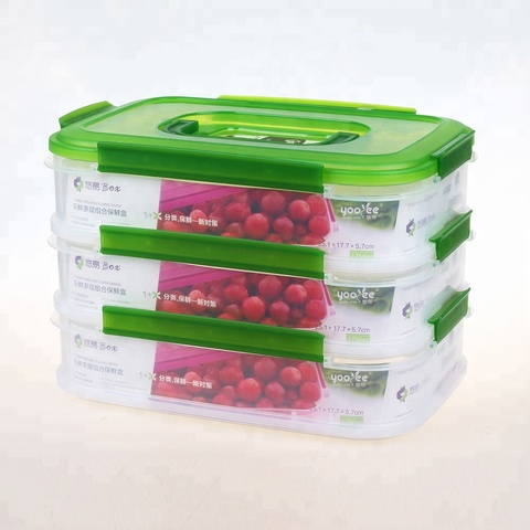 Boîte en plastique pour aliments, bac à légumes frais, conteneurs de stockage des aliments, boîtes de rangement rectangulaires, bacs modernes personnalisées, 3 pièces